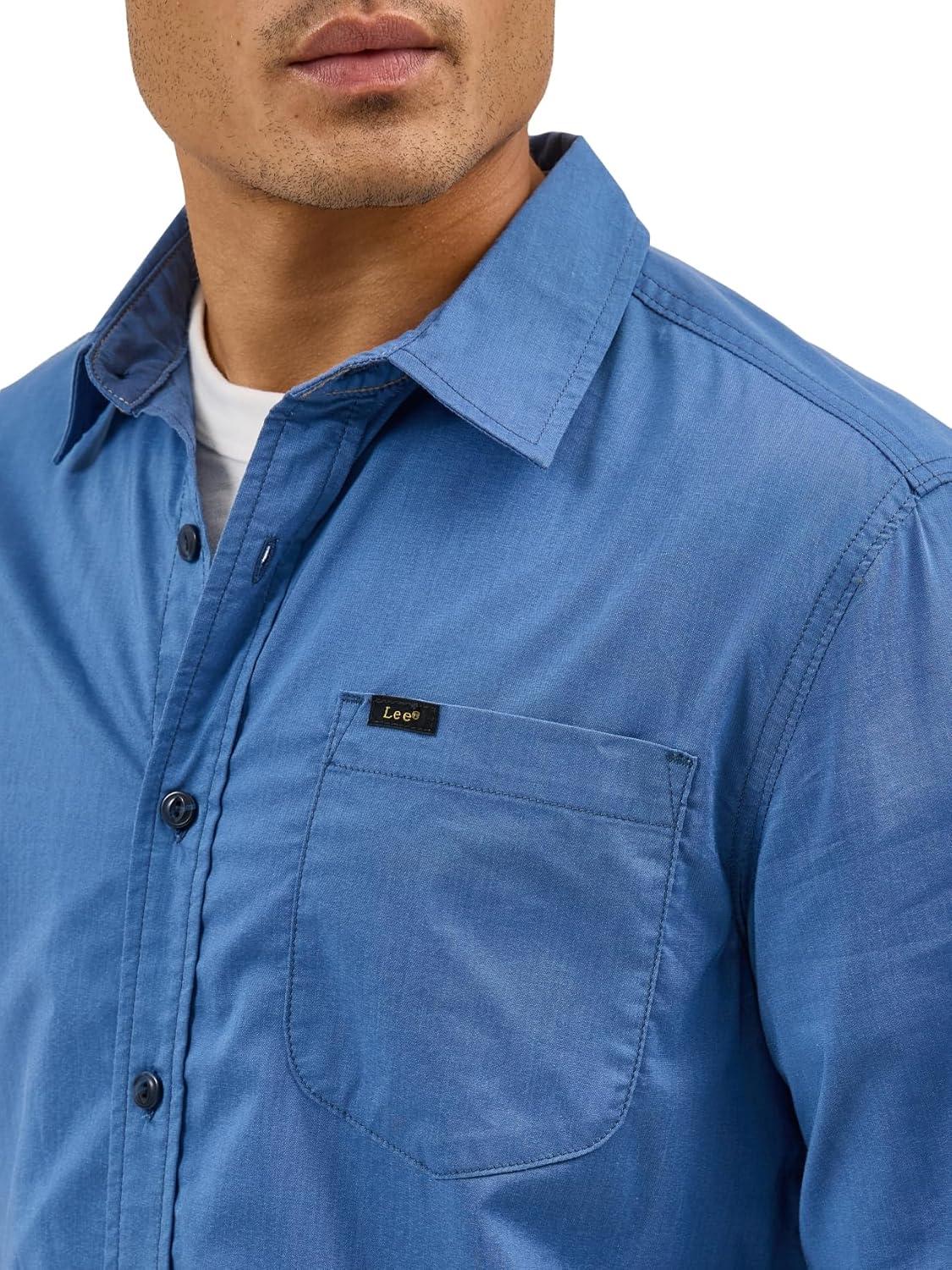 Lee Men’s X Move Long Sleeve All-Purpose 1 Pocket Shirt(Midcentury Blue)