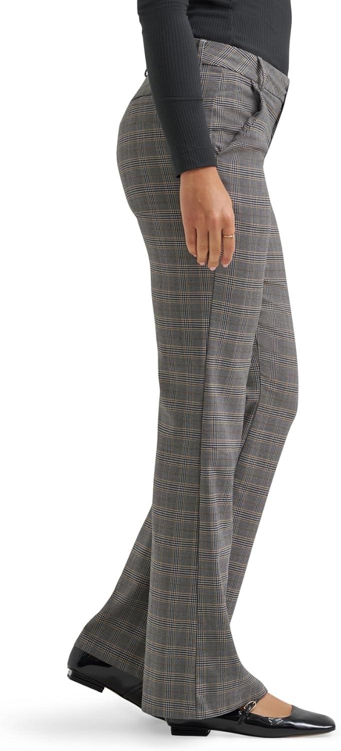 Lee Women’s Wrinkle Free Mid Rise Bootcut Pant(Black/Drizzle Plaid)