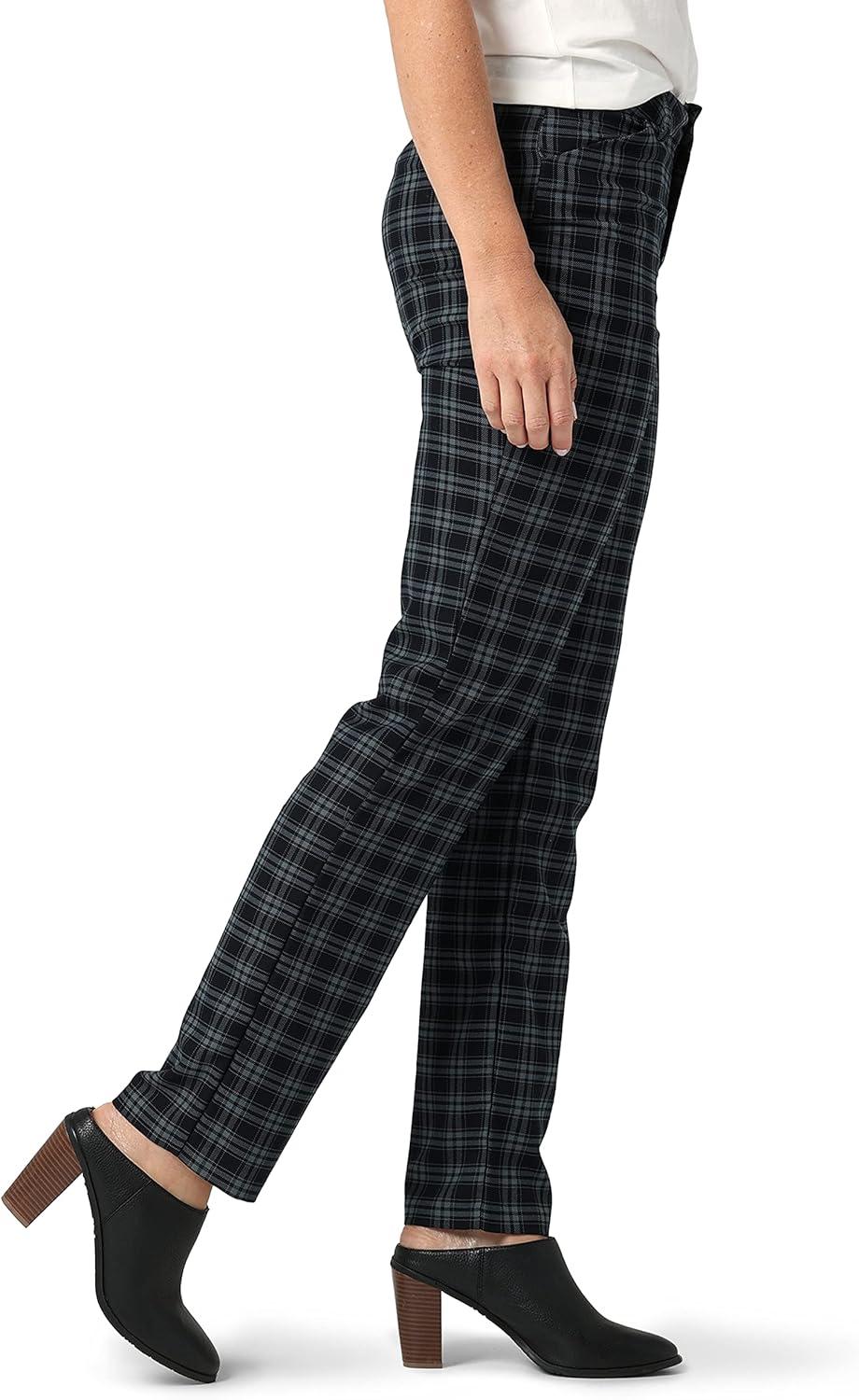 Lee Women’s Wrinkle Free Relaxed Fit Straight Leg Pant(Straw Plaid)